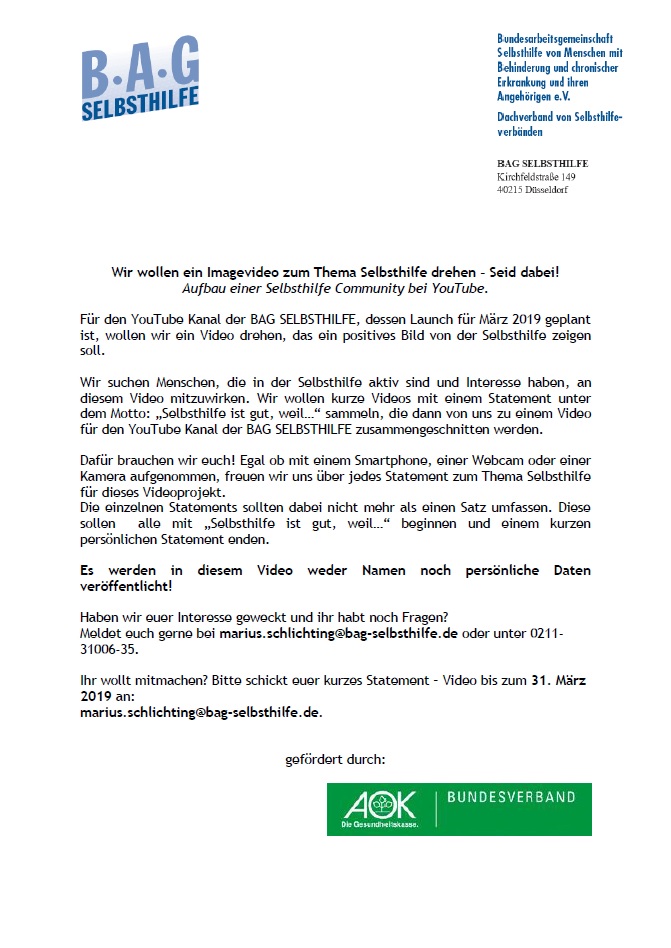 Dann geht das kurze Statement– Video bis zum 31. März 2019 an: marius.schlichting@bag-selbsthilfe.de.