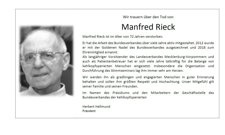 Der Bundesverband trauert um Manfred Rieck