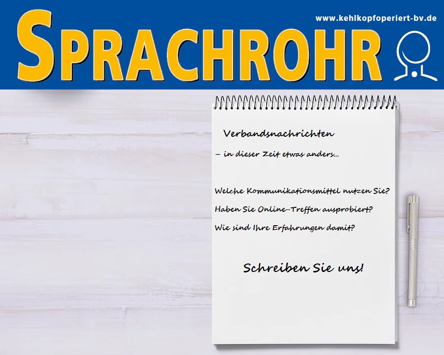 Schreiben Sie uns an: sprachrohr@kehlkopfoperiert-bv.de oder geschaeftsstelle@kehlkopfoperiert-bv.de