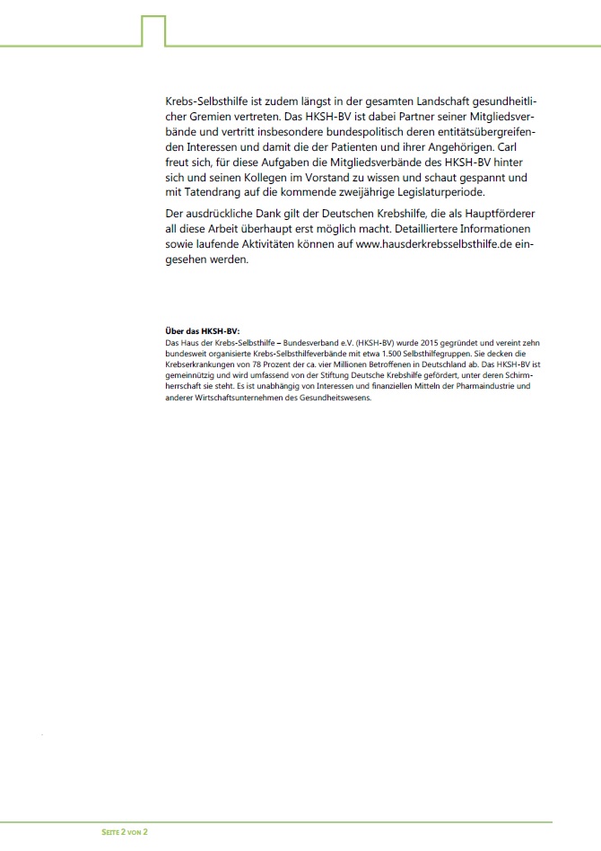 Der Haus der Krebs-Selbsthilfe Bundesverband e. V. hat am 27.02.2019